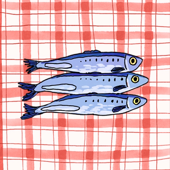 Sardines on Gingham Tablecloth