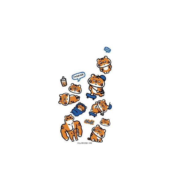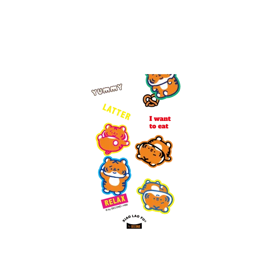 The lines on Song Song Meow’s head form the word “Song 爽”, which hints on their mysterious relationship to cats. The family members include the tiger dad (character Wang 王 on his head) and the tiger mother (character Chuan 川 on her head). One of the reasons why Xiao Lao Fu is chubby is that he grew up being fed the yummiest food made by his grandma. Xiao Lao Fu is a tiger who likes to work out but would never say no to fried chicken chops with Taiwanese milk tea (less sugar and less ice) on cheat days. Currently, its most developed part is its chewing muscles.